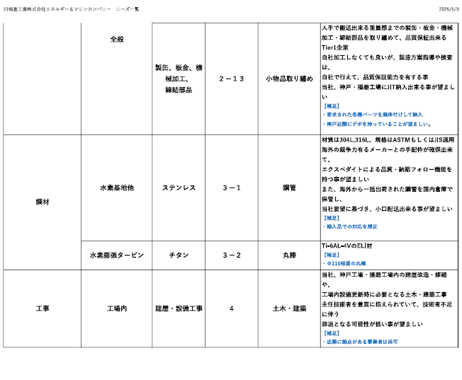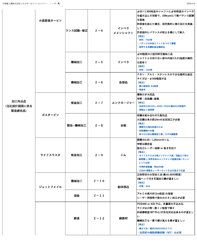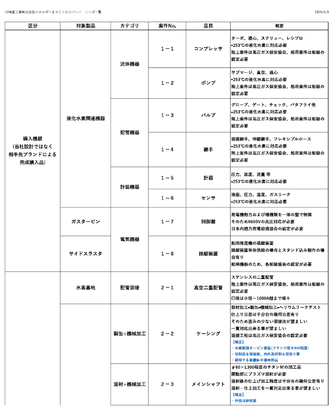 ■川崎重工業㈱エネルギーソリューション&マリンカンパニー ニーズ一覧